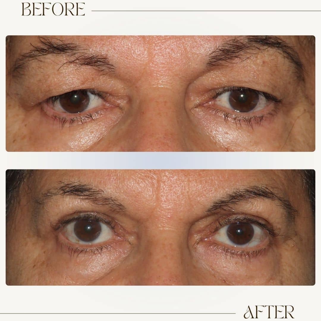 כתוצאה, העור מתארך, יוצר קפל עור לא יפה שנופל ומסתיר את העפעף ויוצר מראה עייף, מבוגר ולא אסטטי. בנשים גורם למריחה של האיפור ובמקרים קשים במיוחד, בעיקר באנשים מבוגרים, עודפי עור מרשימים עשויים להפריע בציר הראיה ולגרום להפרעה בשדה הראיה.